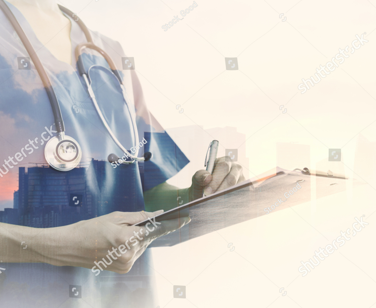 stock-photo-double-exposure-assistant-doctor-writing-on-clipboard-with-modern-city-1019380159-1